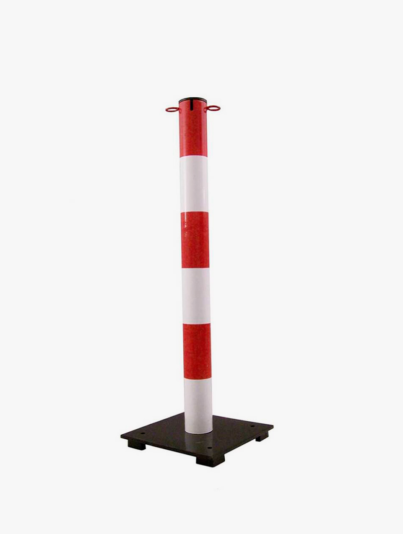 Poste metálico de grosor 3 mm resistente a los golpes con un diámetro de 70mm en color blanco y rojo. También disponible bolardo de 100mm de diámetro.