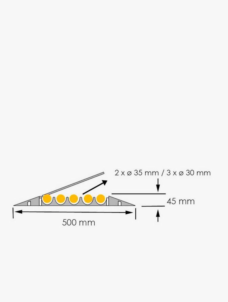Permite el paso de  dos mangueras de 35 mm de diámetro y tres de 30 mm