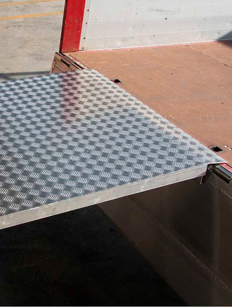Puente de carga fabricado en aluminio. Permite superar distancias entre dos niveles elevados.