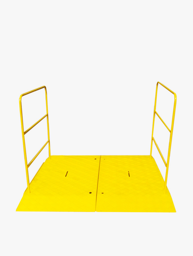 Rampa plástica con refuerzo metálico y barrera de seguridad