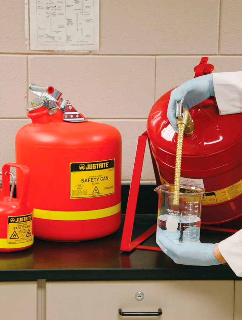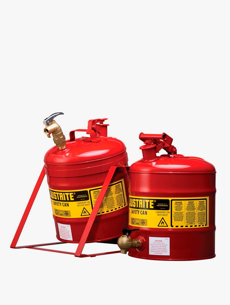 Equipados con grifo para facilitar el trasiego de pequeñas cantidades de líquidos peligrosos hacia otros frascos de manera segura. Los grifos se cierran automáticamente evitando posibles derrames. Los grifos tipo 1 son de pequeño caudal y ayudan a controlar con detalle el dispenso de líquidos. Los grifos tipo 2 proporcionan un mayor caudal.