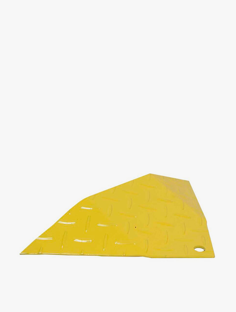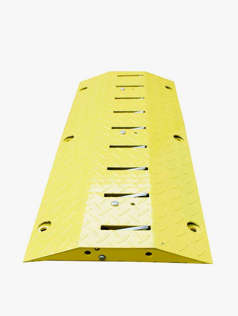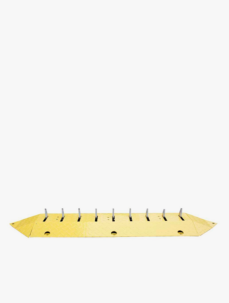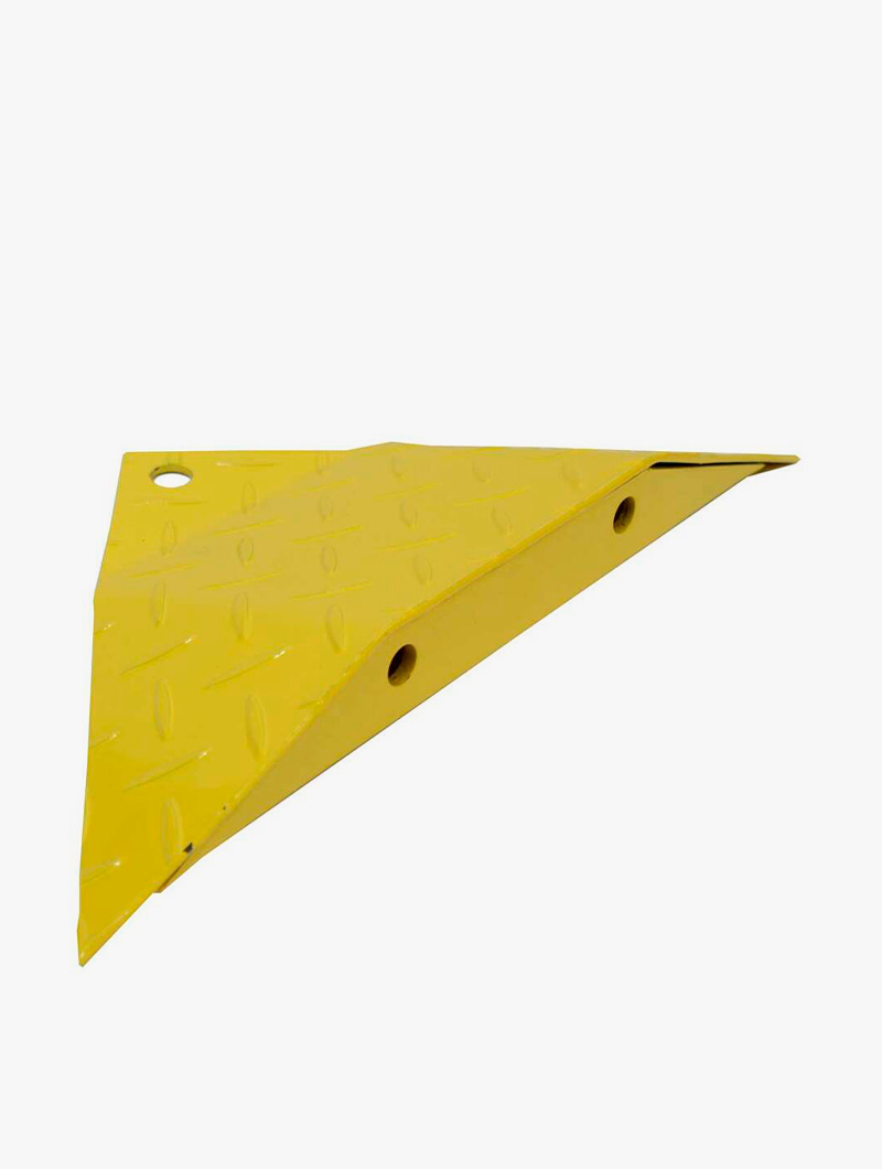 Reductor en acero de espesor de 5 mm para evitar la circulación en la dirección opuesta. Superficie pintada epoxi en color amarillo para mayor visibilidad. Está especialmente diseñado para soportar el paso de vehículos pesados hasta 40 toneladas por eje.