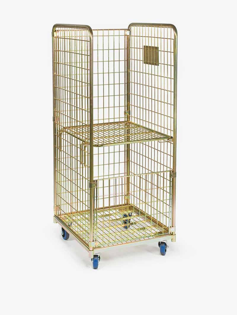 El roll contenedor de malla multiusos está diseñado para abarcar un gran número de aplicaciones. Su peculiar diseño lo hacen ideal para trabajos de lavandería. Debajo del estante se puede poner la ropa sucia, y encima la ropa limpia. Es práctico y fácil de mover. Desplazamiento silencioso gracias a sus ruedas de goma super-elástica. Está formado por 3 paredes de malla desmontables, un estante intermedio abatible y encajable en el lateral, y un panel frontal de 500mm de altura. Ruedas de diámetro 125mm.