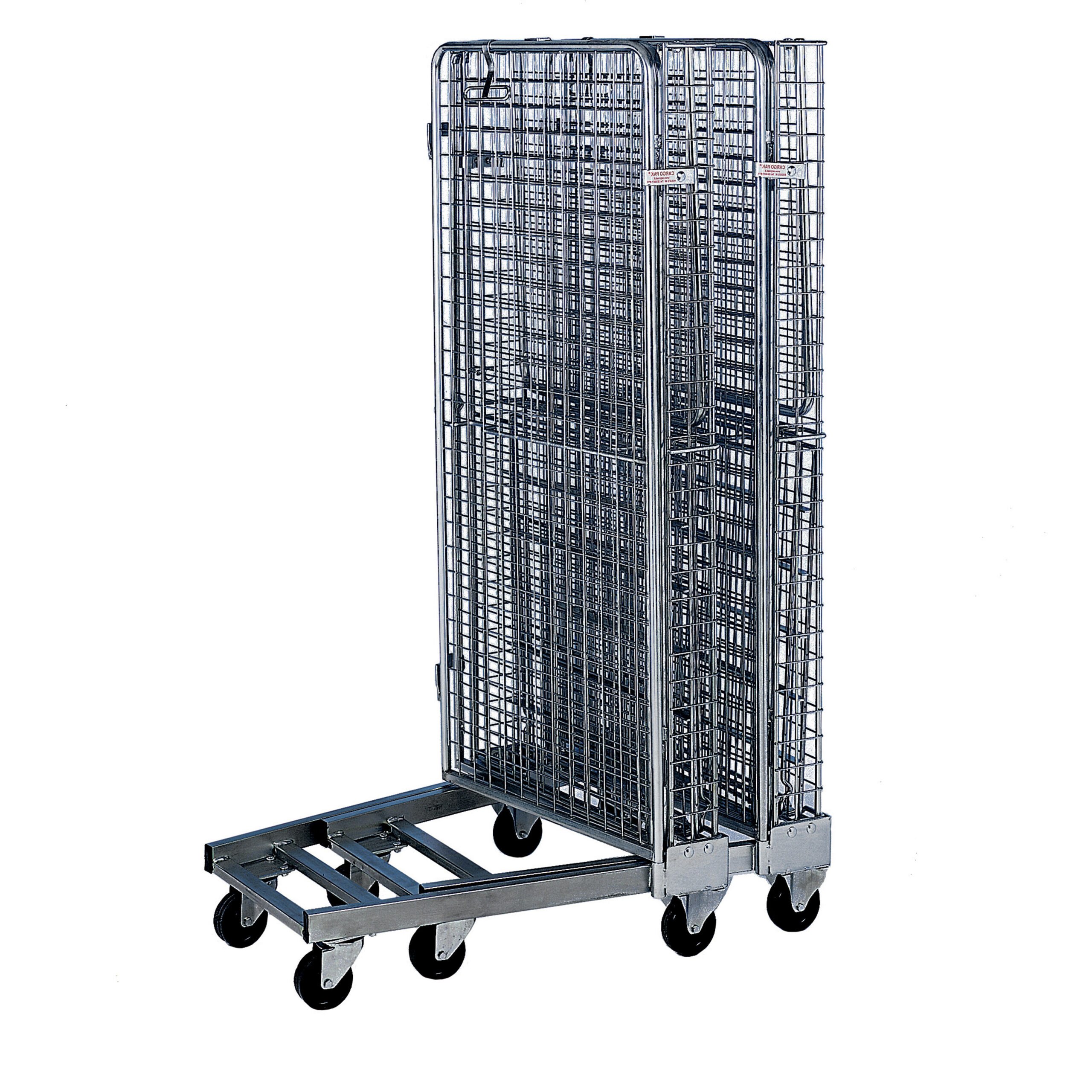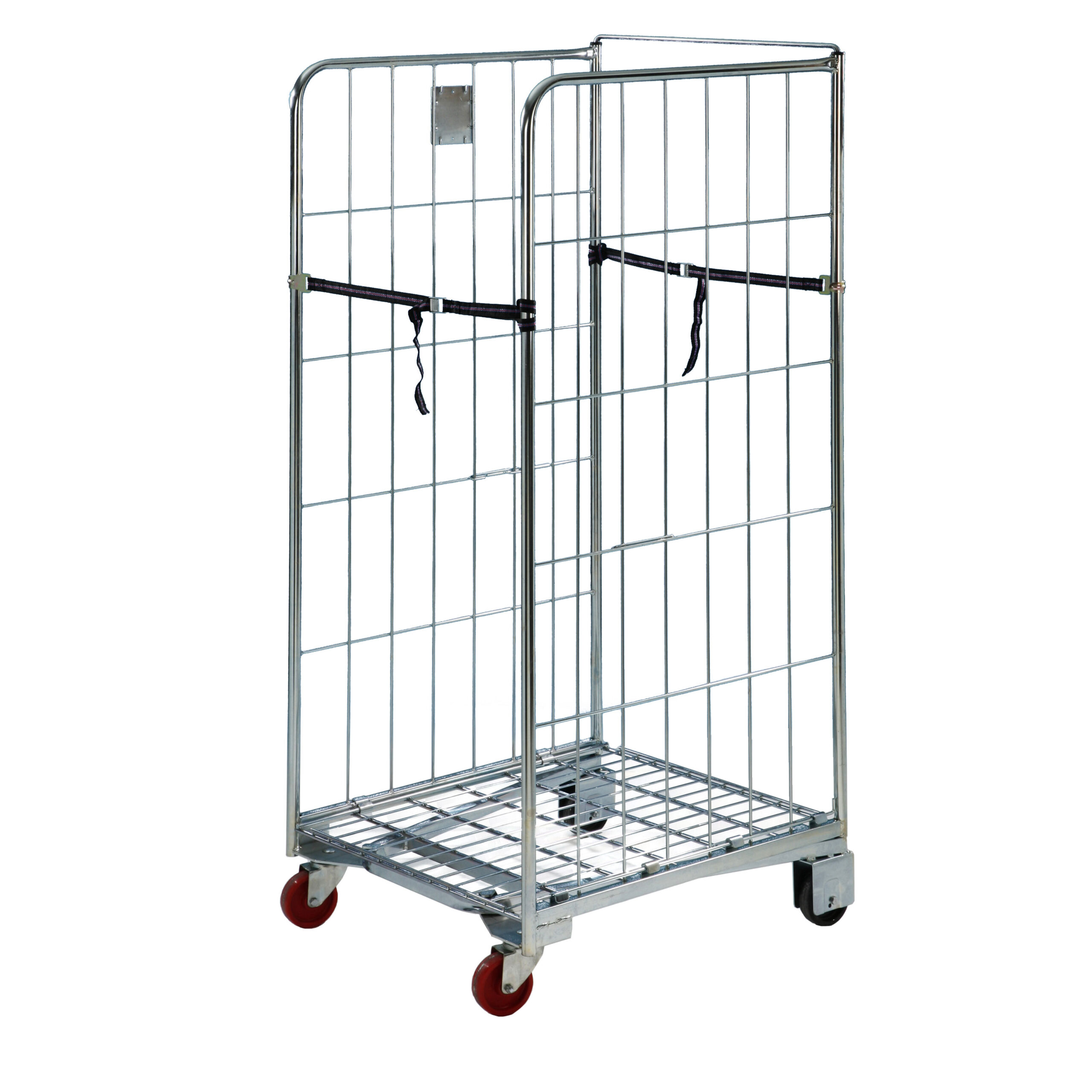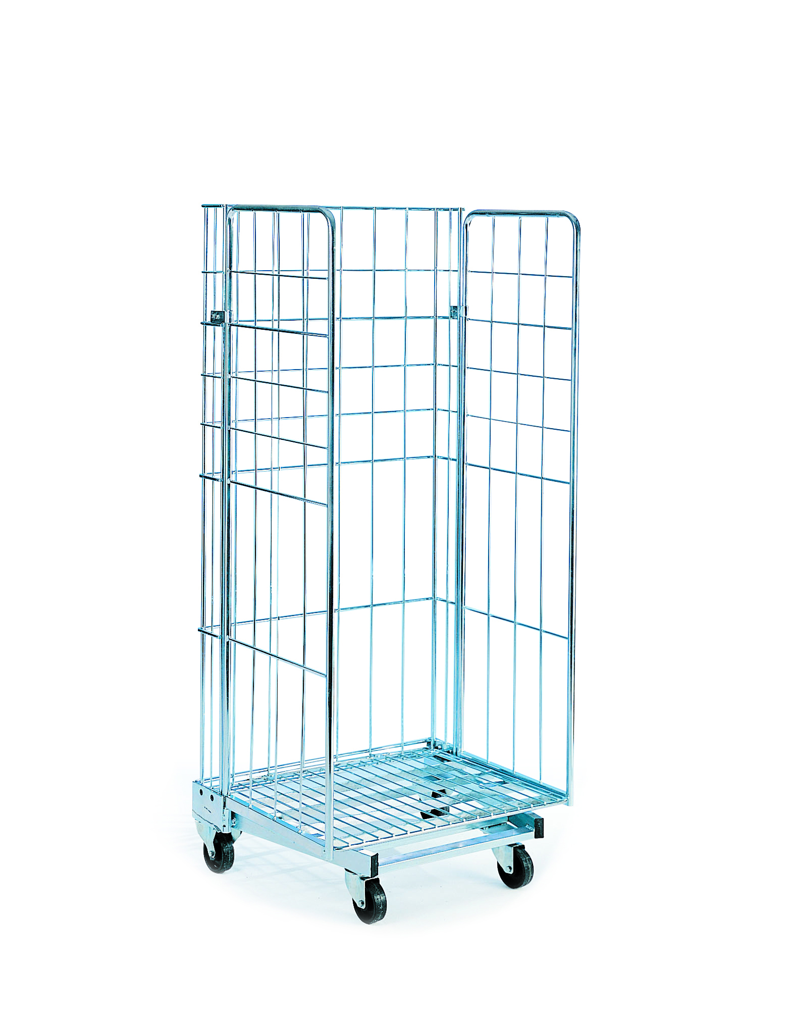 Roll contenedor de malla fina para el transporte y almacenamiento eficiente de todo tipo de productos. Disponible en múltiples configuraciones, con estantes, pared frontal abatible o batiente, colgador, cinchas… Estructura de acero. Base de plástico ligera e ideal para productos alimentarios. Malla de lateral de 50x50mm. Diámetro de ruedas de 106mm. Ruedas disponibles en nylon, goma y polipropileno 2 fijas y dos giratorias. Higiénico y fácil de limpiar. Acabado superficial de zincado electrolítico que le otorga una gran resistencia a la corrosión. Se entrega desmontado.