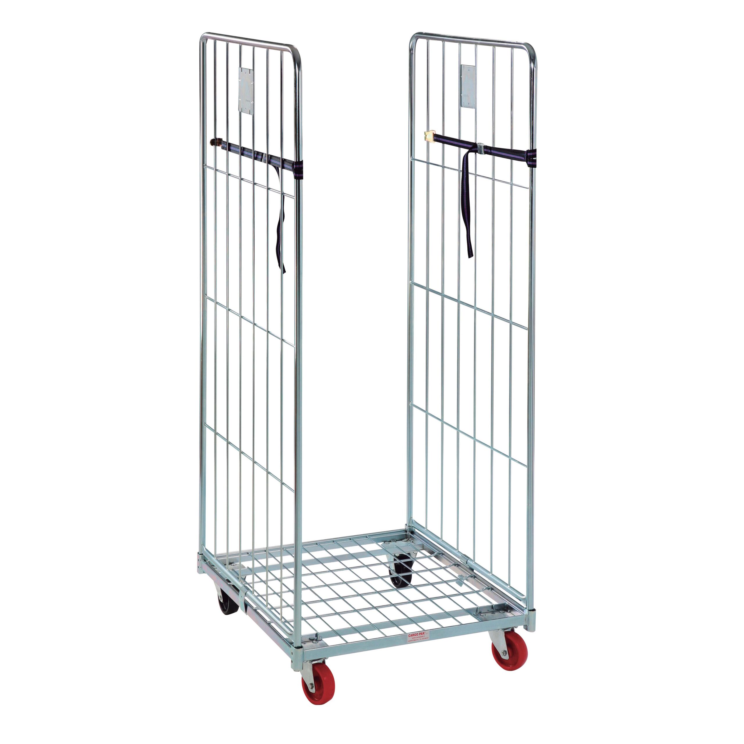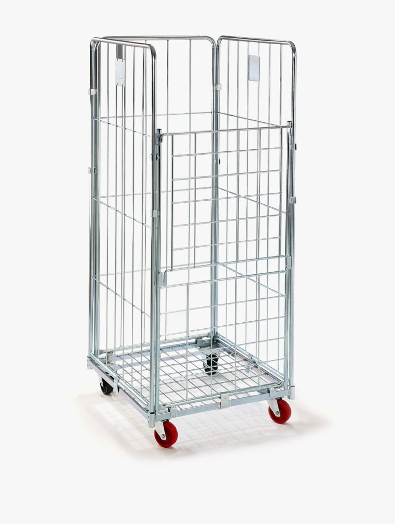 Roll contenedor para el transporte y almacenamiento eficiente de todo tipo de productos, muy útil en alimentación. Disponible en multuples configuraciones, con estantes, pared trasera, pared frontal abatible, colgador, cinchas… Estructura tubular de acero con malla de varilla maciza. Malla de la base: 40x135mm. Malla de laterales: 105x400mm.