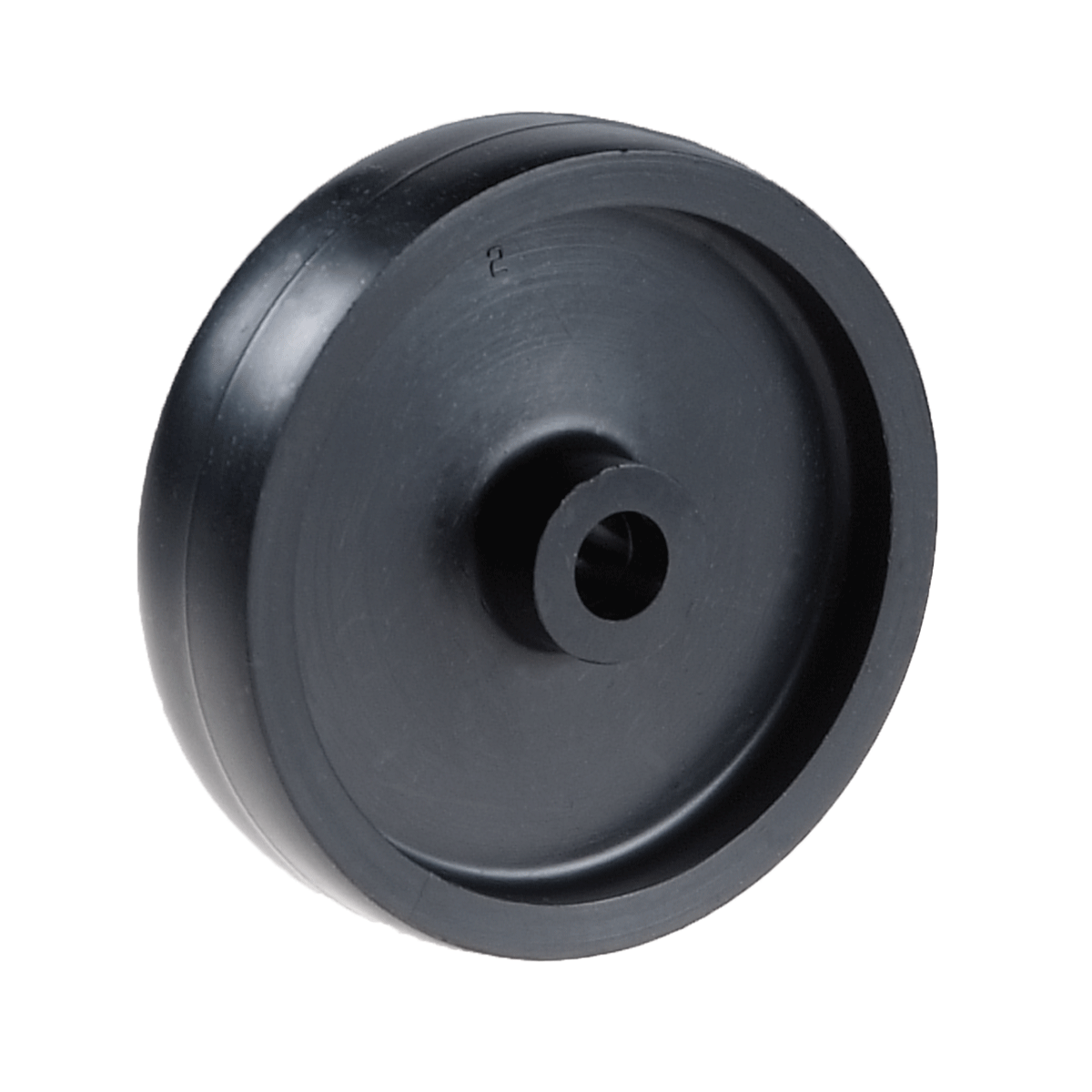 Rueda monobloque de poliamida negra, disponible con cojinete de rodamiento liso.