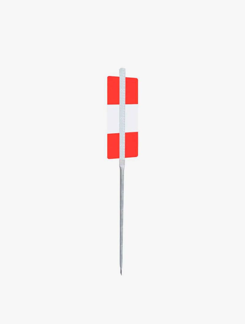 Poste metálico con señal reflectante en color rojo y blanco para una mayor visibilidad.