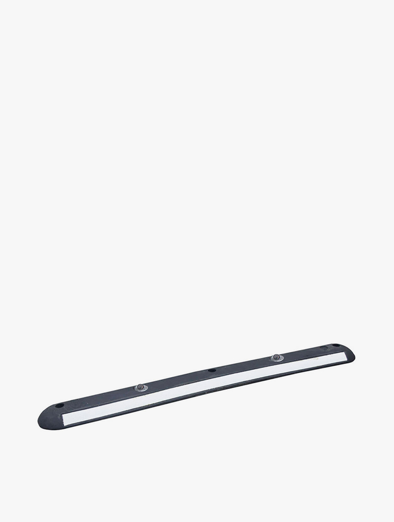Separador de carriles para delimitar vías reservadas o de emergencias, carril bici o zonas de estacionamiento. Fabricados en caucho virgen vulcanizado, posee 2 bandas reflectoras de color blanco, reflectante clase 2.