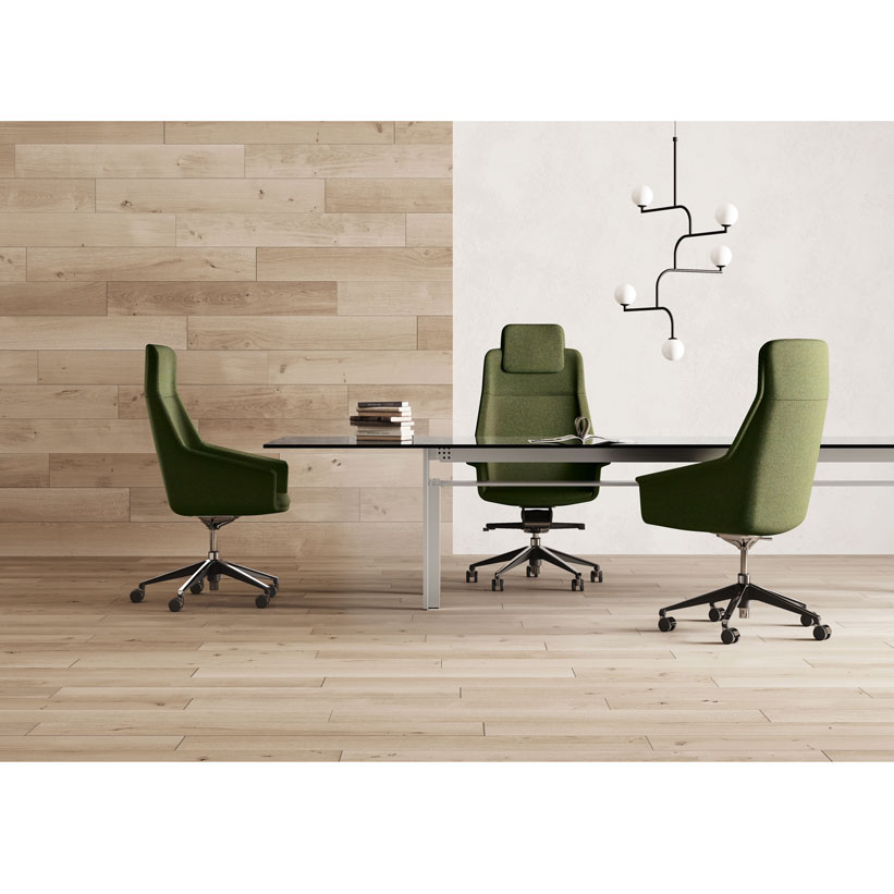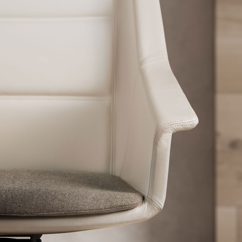 Jera es un sillón de ejecutivo moderno, cómodo y envolvente, propuesto en dos alturas y tres versiones. Sus formas, claras y bien definidas, están realzadas por una tapicería lisa o bandas cosidas.