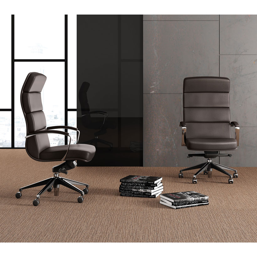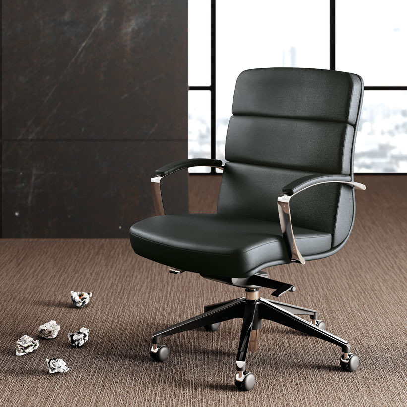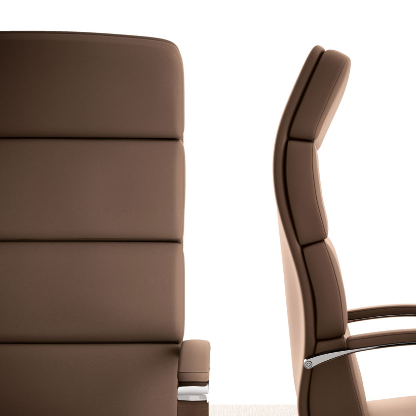 Una colección clásica y moderna, diseñada para los amantes de las formas suaves pero rigurosas. Scena es una familia compuesta por un sillón ejecutivo, un sillón semi-direccional y asientos para invitados.
