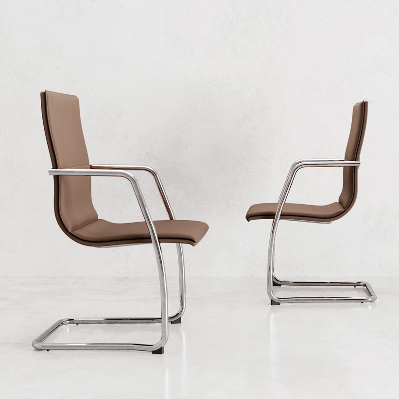 La versión en voladizo, con un nuevo diseño de respaldo, realza la personalidad del sillón y completa la colección con combinaciones consistentes y elegantes.