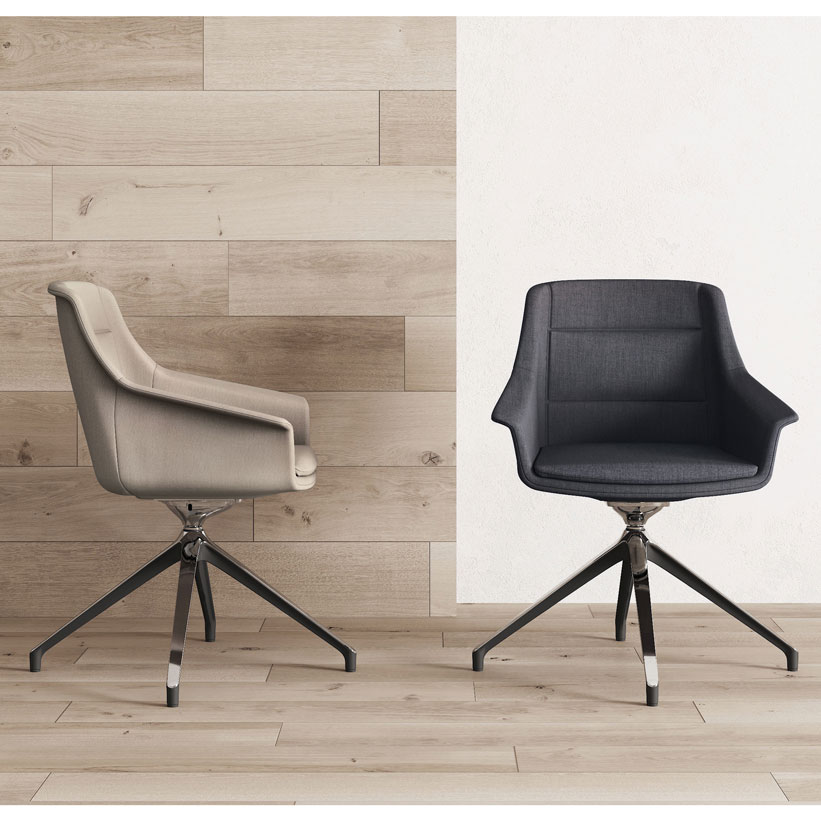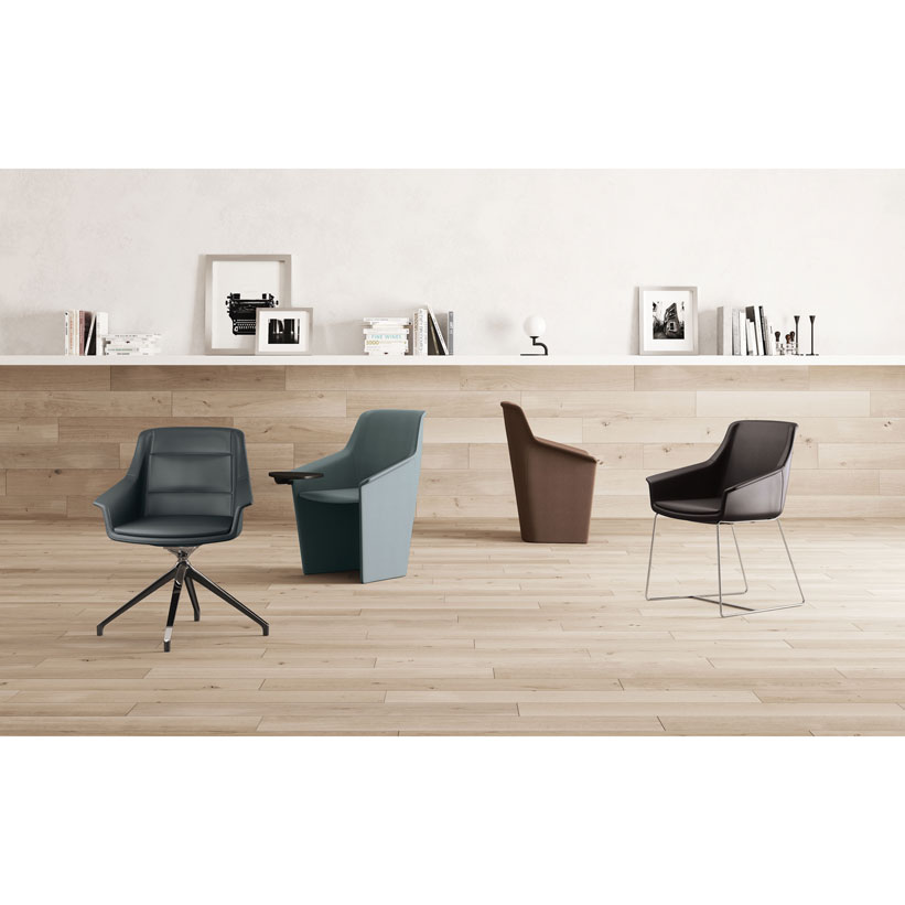 Jera es un sillón de ejecutivo moderno, cómodo y envolvente, propuesto en dos alturas y tres versiones. Sus formas, claras y bien definidas, están realzadas por una tapicería lisa o bandas cosidas.