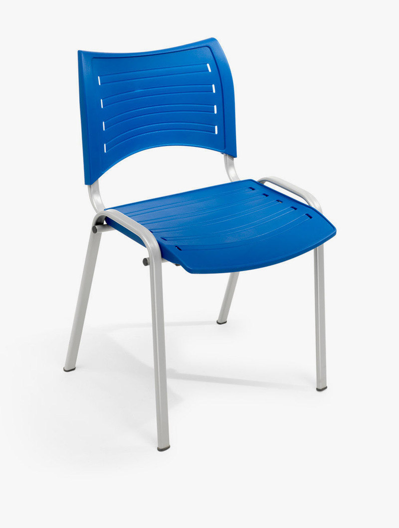 Silla con estructura de patas en acero cromado o pintado y sistema apilable.