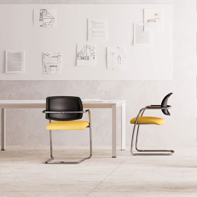 Las sillas Sistema garantizan una gran continuidad estilística entre sillas para máquinas de escribir y sillas en voladizo a juego combinaciones que son apropiadas y bien equilibradas en cualquier ambiente de trabajo.