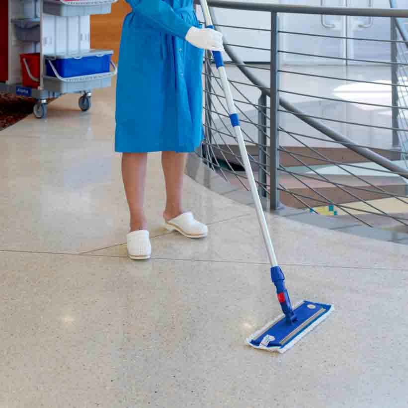 Disponemos de los sistemas más innovadores en limpieza plana del suelo. Mejorando los sistemas tradicionales que emplean paños de cuerda. Presentamos un nuevo sistema de fregado basado en un porta-mopa de plástico plano, llamado “Telaio Speedy®”, para aumentar el tamaño de la herramienta de limpieza limpiando el suelo con importantes ventajas en términos de tiempo y recogida de suciedad. Además, los porta-mopas son plegables permitiendo rotar y mover la fregona sin que caiga la mopa.