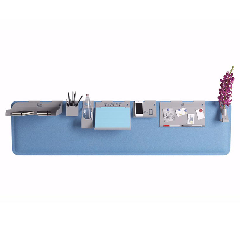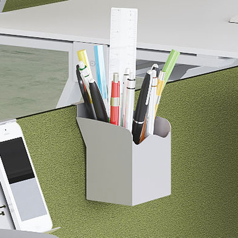 Porta lápices aplicable a los paneles fonoabsorbentes.