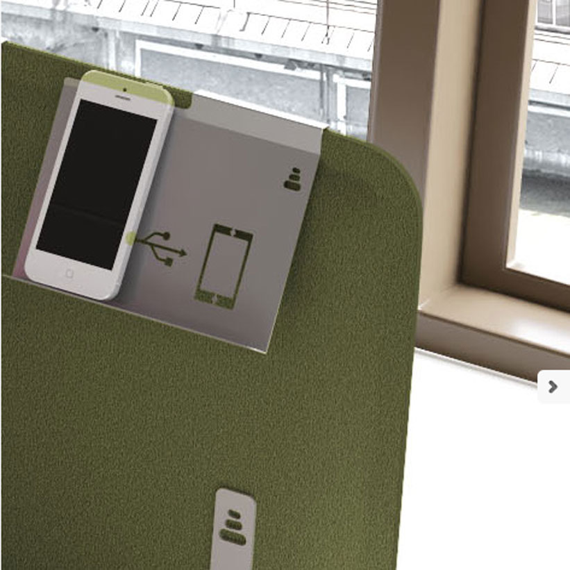 Soporte para móvil aplicable a los paneles fonoabsorbentes.
