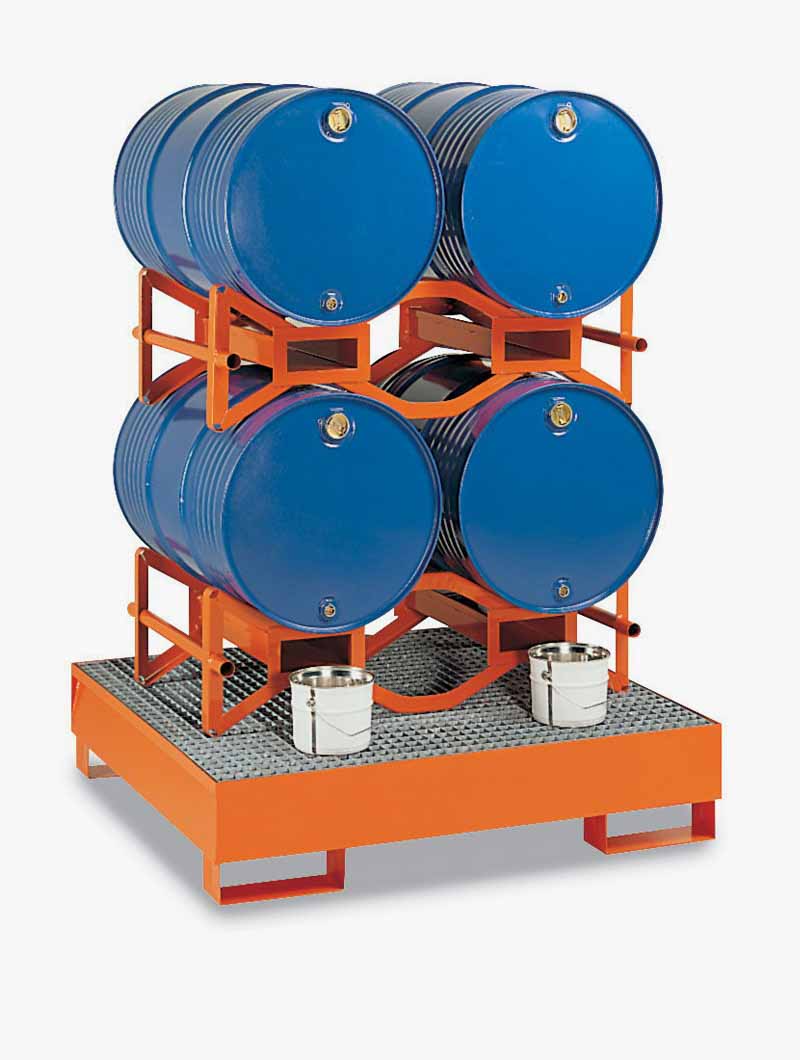 La combinación de soportes apilables y cubeto de retención hacen que esta sea una solución optima para el almacenamiento de barriles. Puede apilar varios niveles según las necesidades de carga.