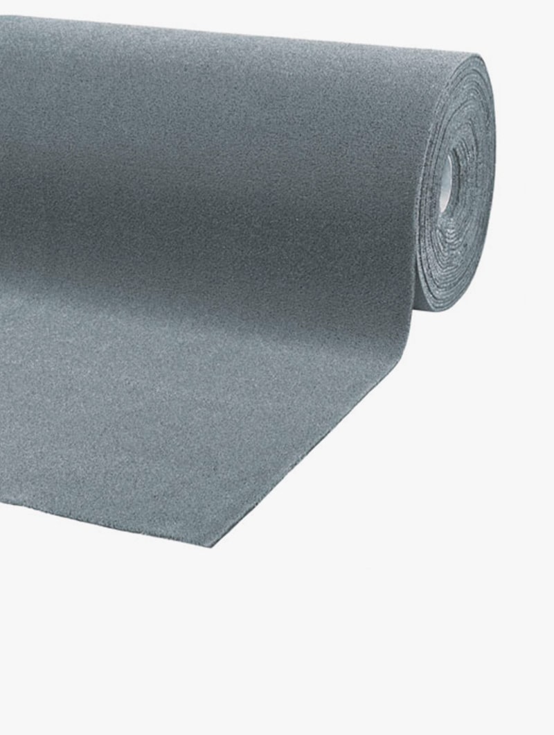 Rollo de fieltro 100% polipropileno con la base de vinilo negro. Fabricación de la superficie usando la técnica tufted, de 5mm de grosor.