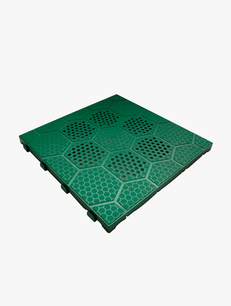 El Suelo HEXA es una solución modular robusta y versátil, diseñada para soportar un uso intensivo tanto en interiores como en exteriores.