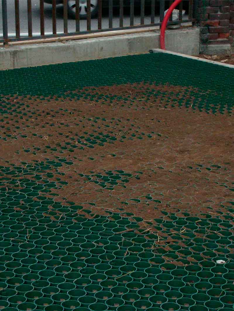 Gracias a su estructura celular de alta resistencia, este pavimento protege la vegetación y evita la formación de surcos, charcos o zonas embarradas incluso bajo condiciones meteorológicas adversas o con tráfico intenso.