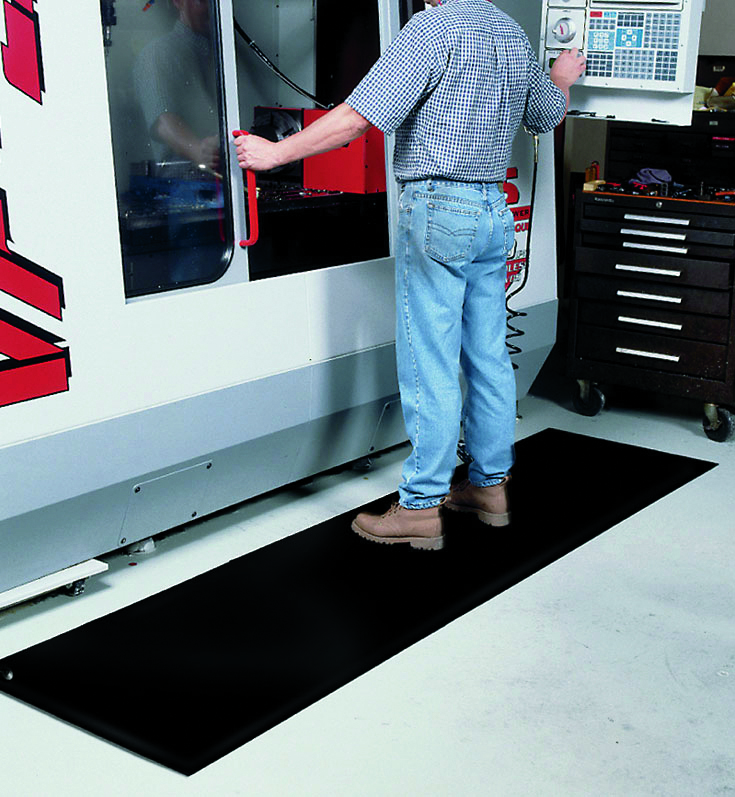 Alfombra estática disipativa antifatiga con bordes biselados para mayor seguridad.