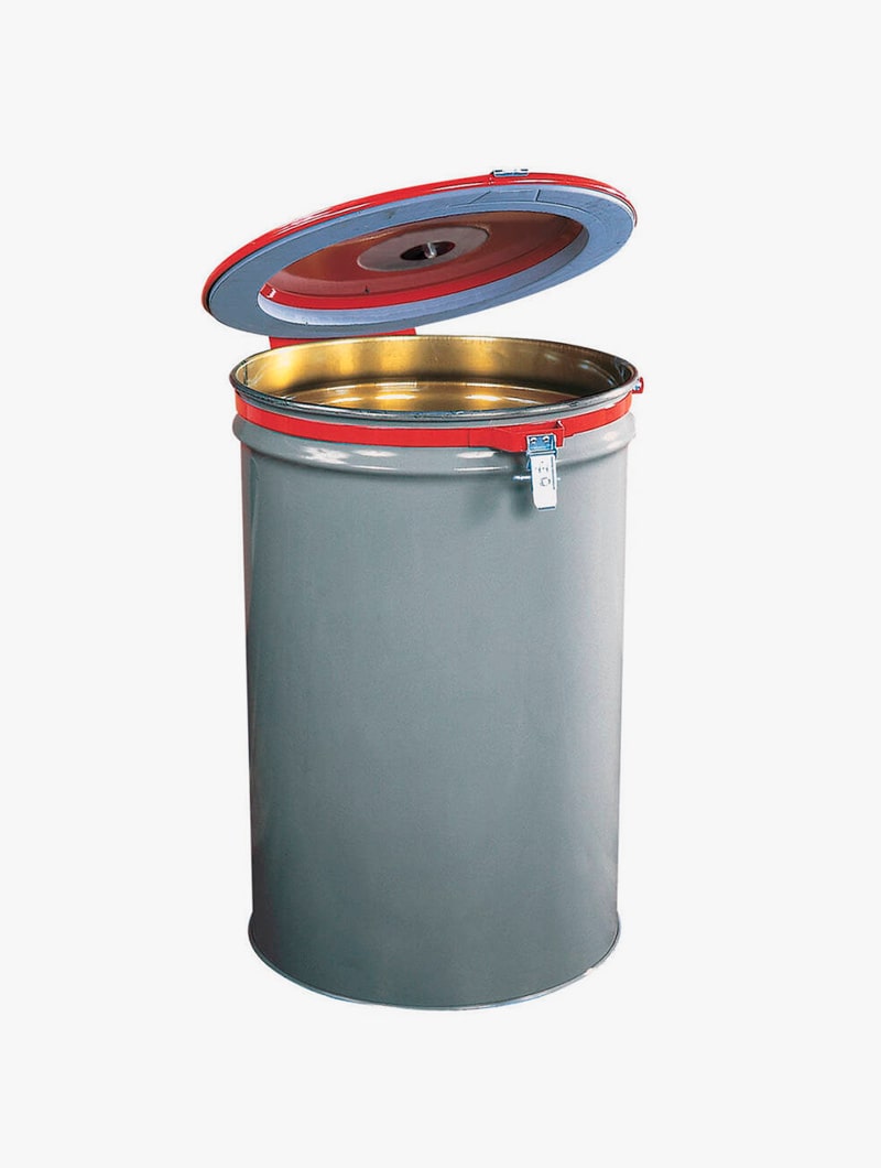 Existe también el modelo con junta aislante que convierte el bidón en una papelera. La espuma aislante evita que los vapores de las sustancias inflamables salgan al exterior.