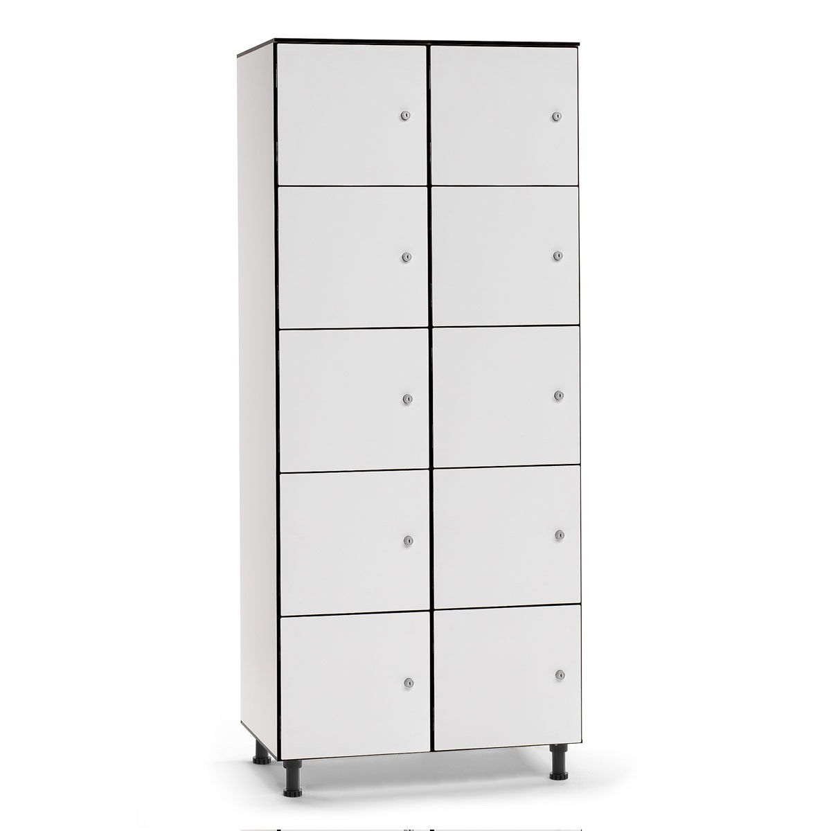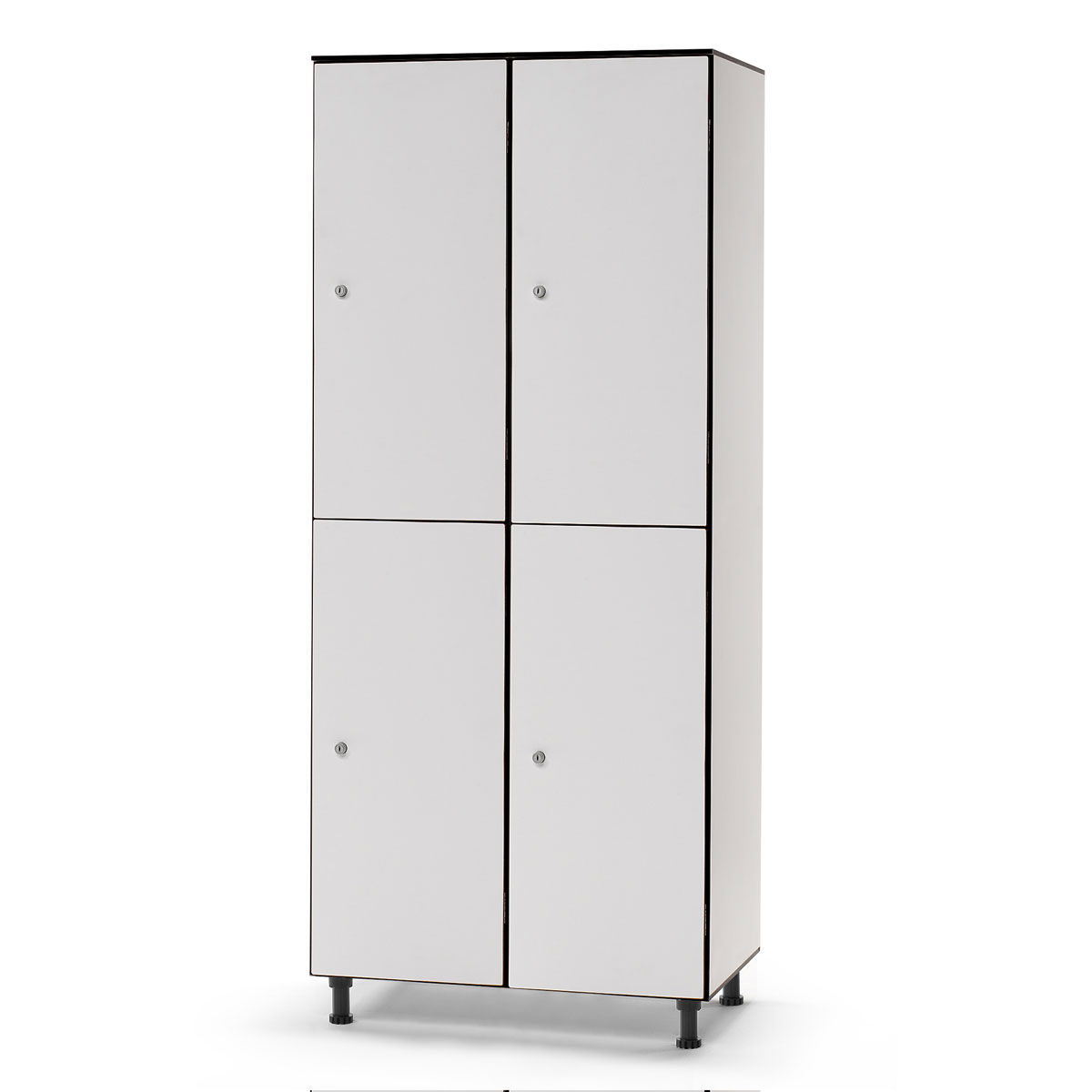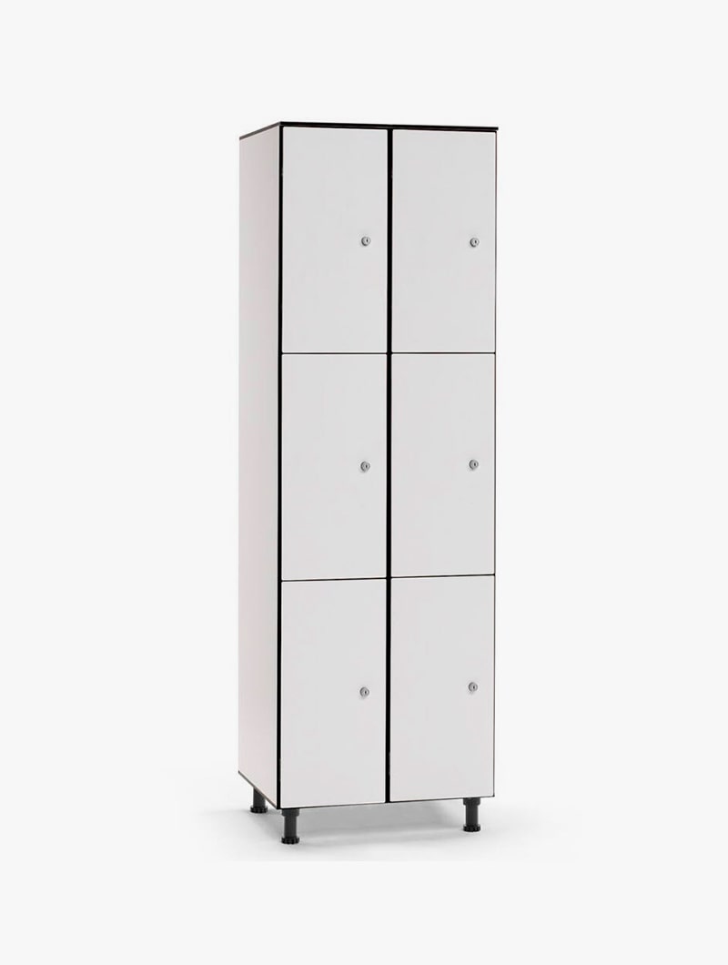 Este tipo de producto está indicado para áreas públicas y lugares donde la higiene desempeña un papel fundamental, tales como hospitales, instalaciones deportivas, zonas Spa, hoteles, empresas de alta tecnología, etc. Fabricado con material compacto de resinas fenólicas termoendurecidas. Sistema de ventilación óptimo para cada compartimento. Herrajes de acero inoxidable de alta calidad. Carácter ecológico: uso óptimo de la materia prima hasta una duración máxima del producto. Alta resistencia al rayado, al desgaste, a la humedad y a las sustancias químicas. Muy fácil de limpiar gracias a su superficie no porosa, la suciedad no llega a adherirse a las Taquillas fenólicas. En el caso de poner patas, la altura total de las taquillas fenólicas equivale a la altura expresada en las tablas más la de la pata. Las patas son regulables con un mínimo de 70mm hasta un máximo de 100mm.