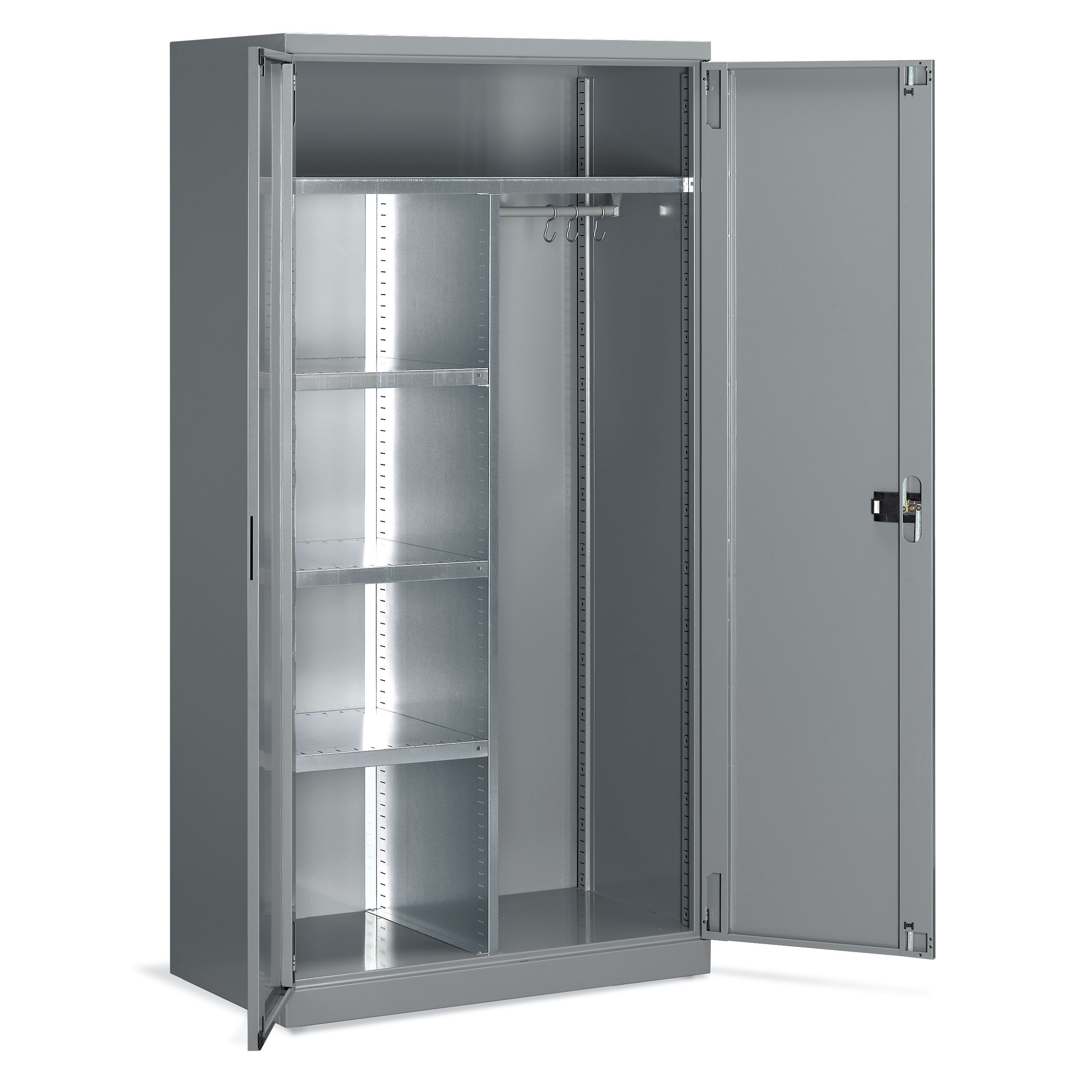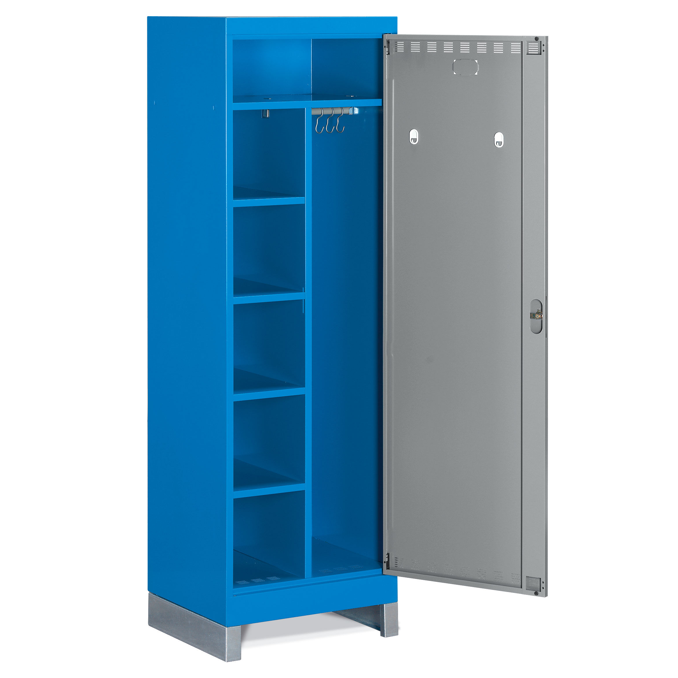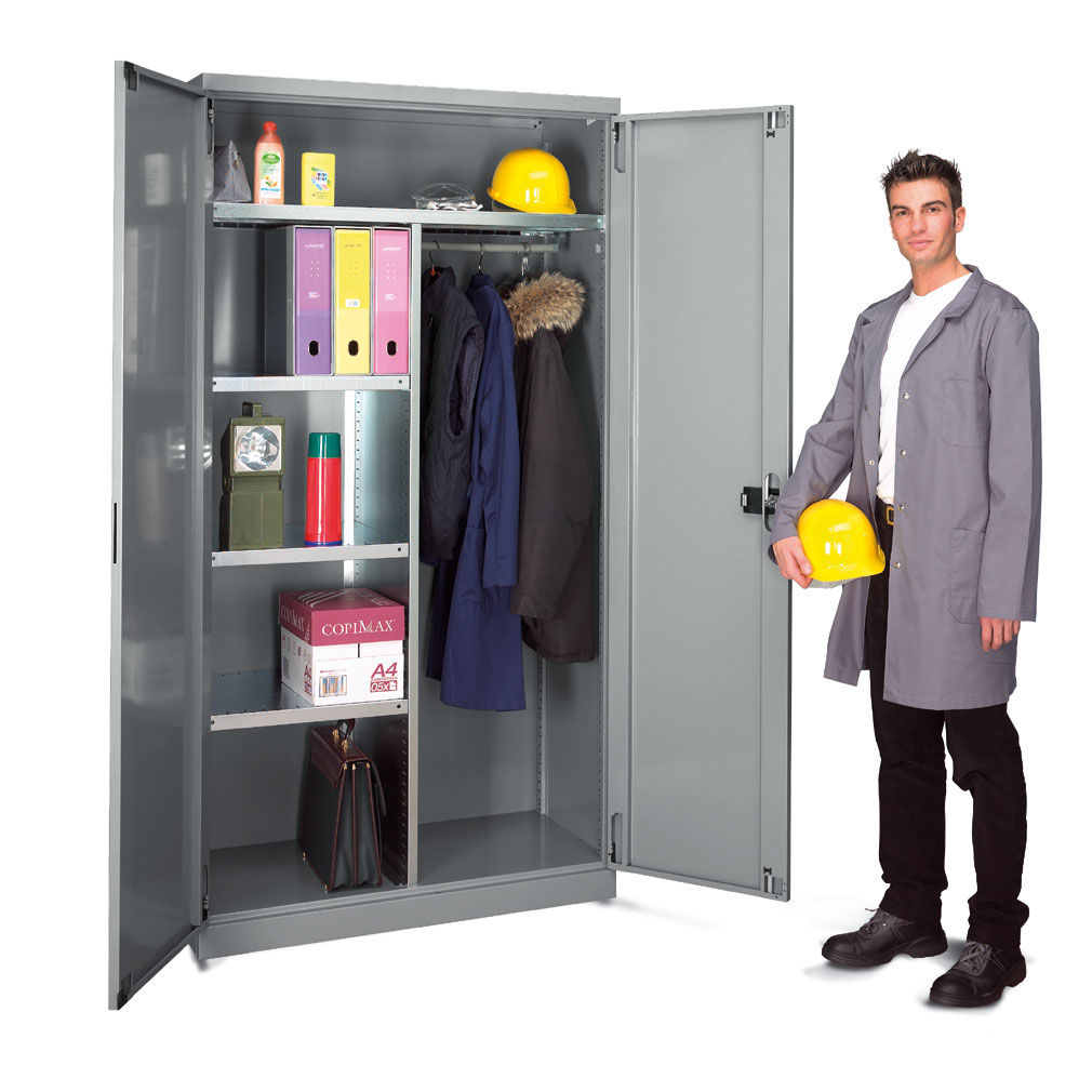 Las taquillas metálicas PERFOM GS110-120 pueden llevar compartimentos verticales o casilleros para guardar objetos y efectos personales de tamaño mediano y pequeño. Los anchos de puerta pueden ser de 300mm o 400mm.. Según las diferentes necesidades, el techo puede ser horizontal o inclinado; este último, gracias a su inclinación, es más fácil de limpiar y junto con el divisorio limpio/sucio, representa la solucción adecuada para todos los entornos que necesiten estándares de higiene muy precisos. El compartimento interno de las taquillas metálicas para vestuarios puede dividirse por medio de una balda galvanizada, que, en algunos modelos, se puede regular en altura.