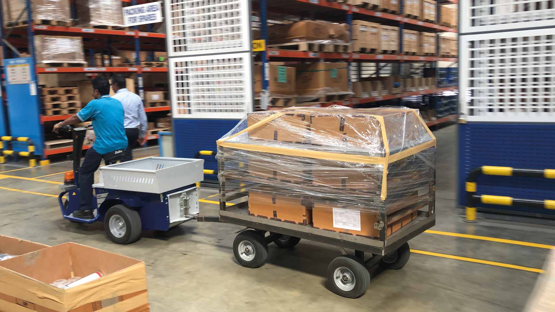 El tractor eléctrico para almacenes JACK MASTER para logística industrial es la solución ideal para eliminar la manipulación manual de cargas y acelerar los movimientos.