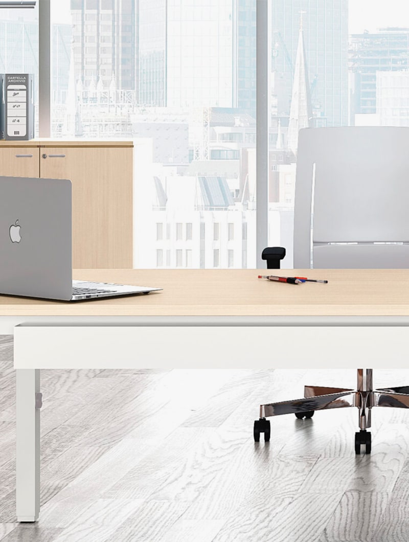 Mobiliario ejecutivo de alta calidad, de la gama UP. Con Desk elevation system.