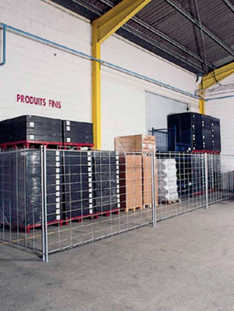 Vallas de acero galvanizado para delimitaciones temporales, obras, delimitación de secciones de almacén, protección de maquinaria, etc.