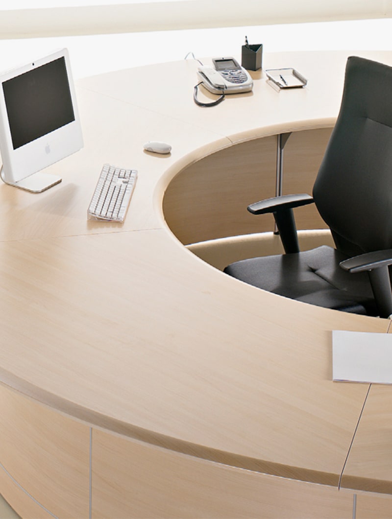 Presentamos el mobiliario para altos niveles de recepción. Acogedora y elegante bienvenida, eficiencia y rapidez son requisitos fundamentales en un sistema diseñado para conocer las necesidades de un ambiente de trabajo moderno.