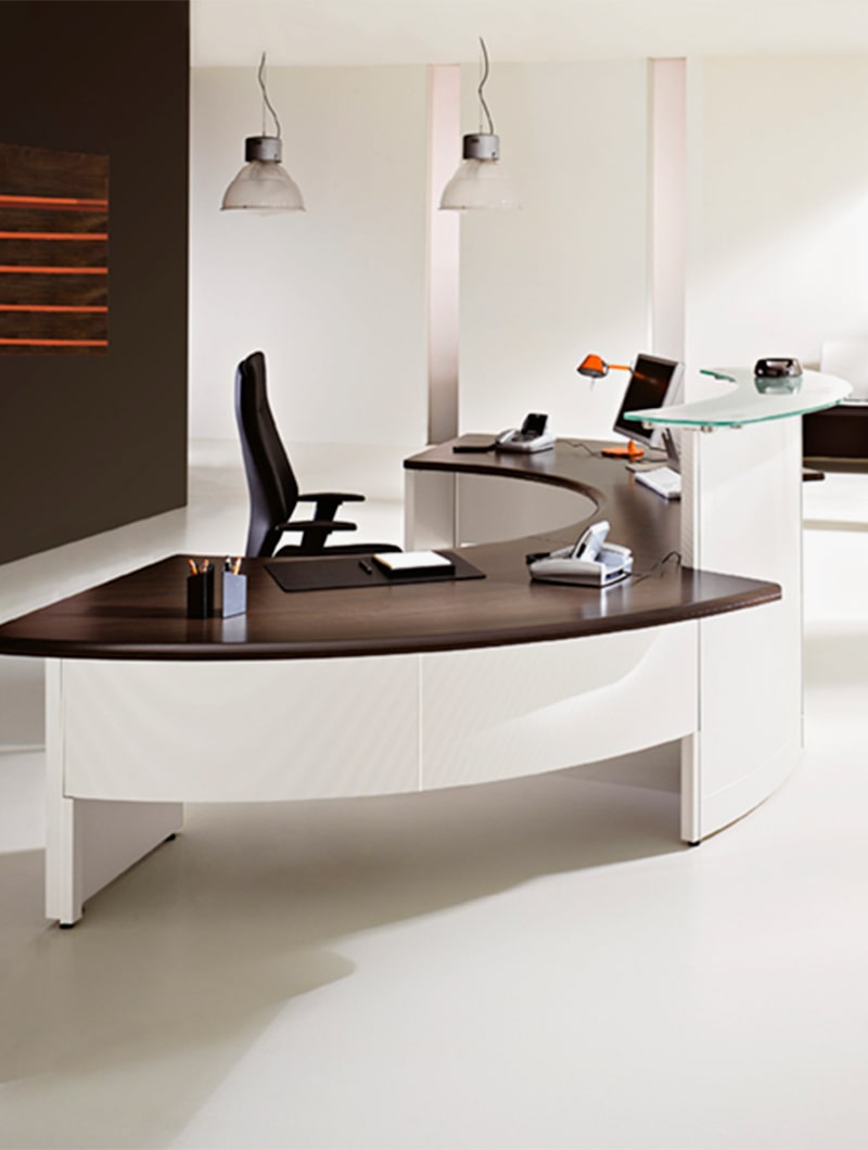 Presentamos el mobiliario para altos niveles de recepción. Acogedora y elegante bienvenida, eficiencia y rapidez son requisitos fundamentales en un sistema diseñado para conocer las necesidades de un ambiente de trabajo moderno.