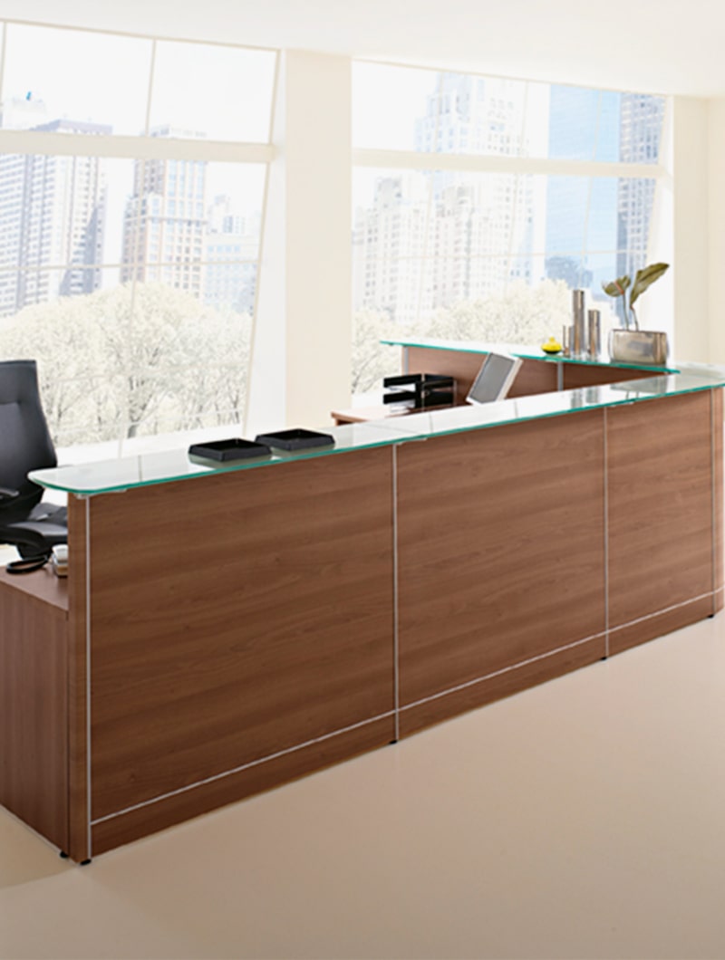Presentamos el mobiliario para altos niveles de recepción. Acogedora y elegante bienvenida, eficiencia y rapidez son requisitos fundamentales en un sistema diseñado para conocer las necesidades de un ambiente de trabajo moderno.