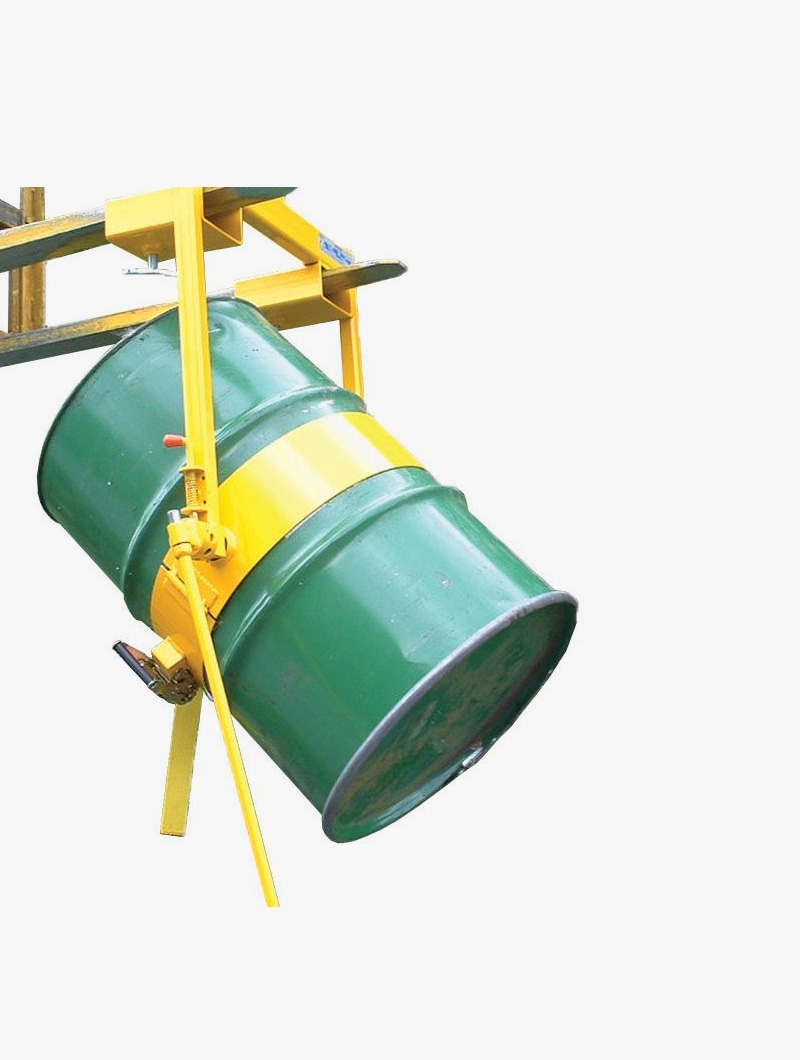 Este accesorio, simple y sumamente efectivo, se acopla a su carretilla elevadora para proporcionar un control total sobre el vaciado o la mezcla de bidones.