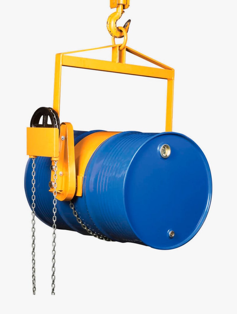 Este dispositivo es totalmente mecánico, lo que minimiza el mantenimiento y garantiza una operación fiable. El Volteador de bidones de 200lts para grúa está diseñado para ser enganchado directamente a una grúa y cuenta con una capacidad de carga de hasta 350 Kg. Está fabricado en acero de alta resistencia para soportar el uso industrial.