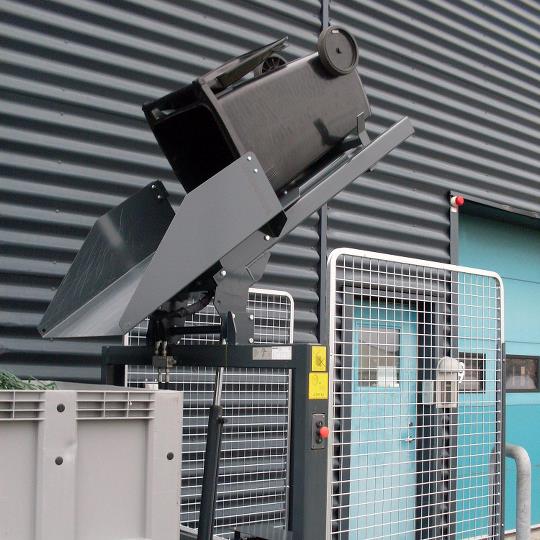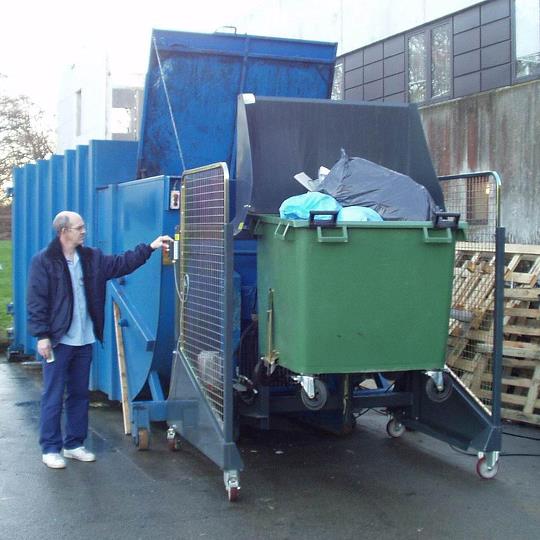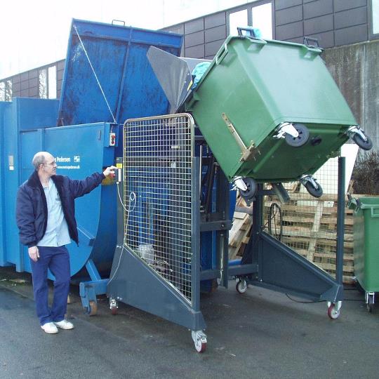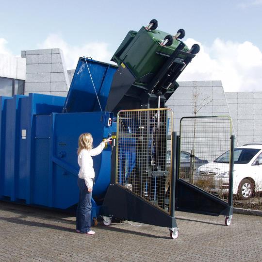 Además, el embudo y el ángulo de volteo, permiten utilizar diferentes tipos de contenedores, desde 80, 120, 240 y 1100 litros, con una capacidad máxima de 400 kilos.